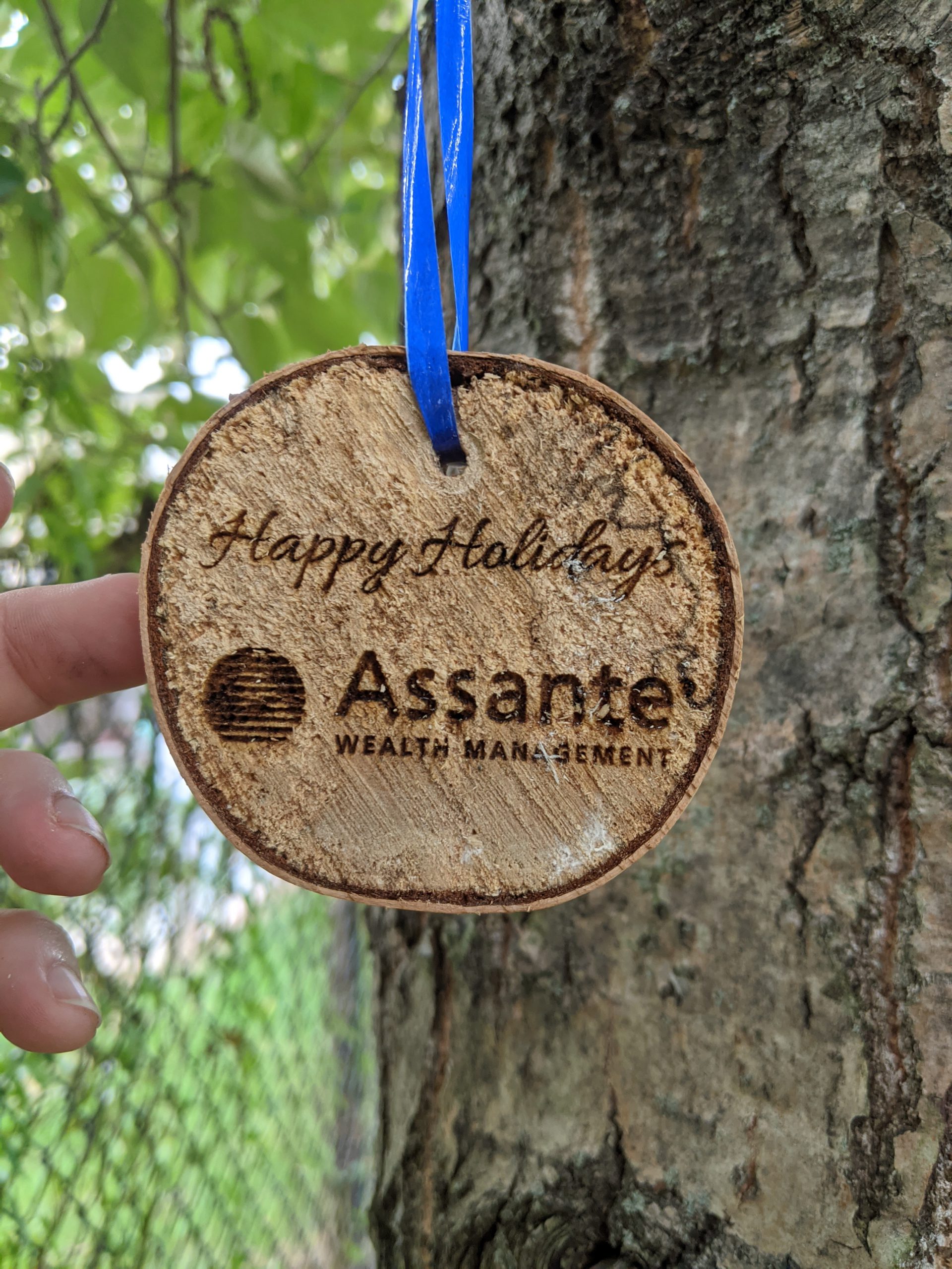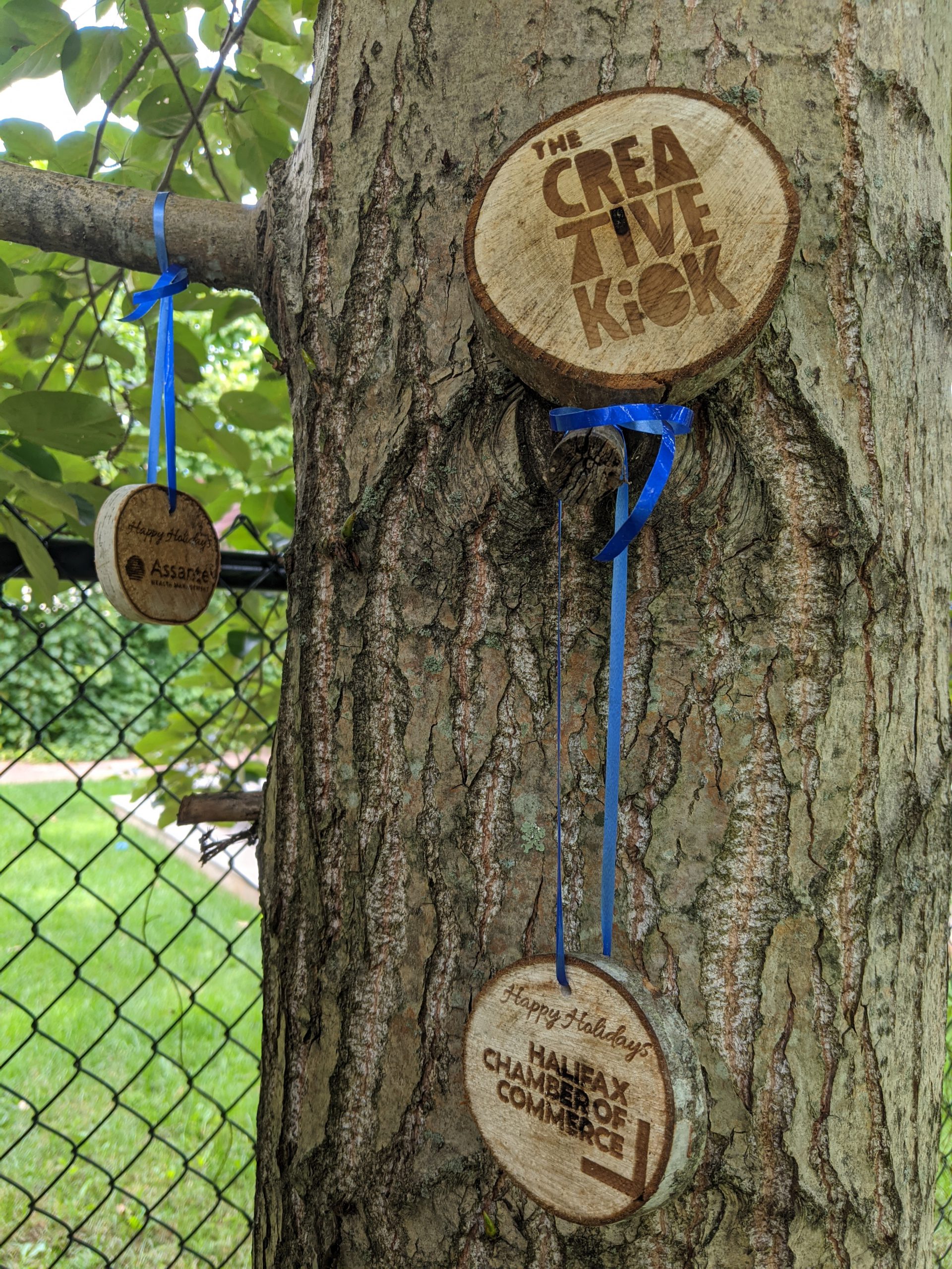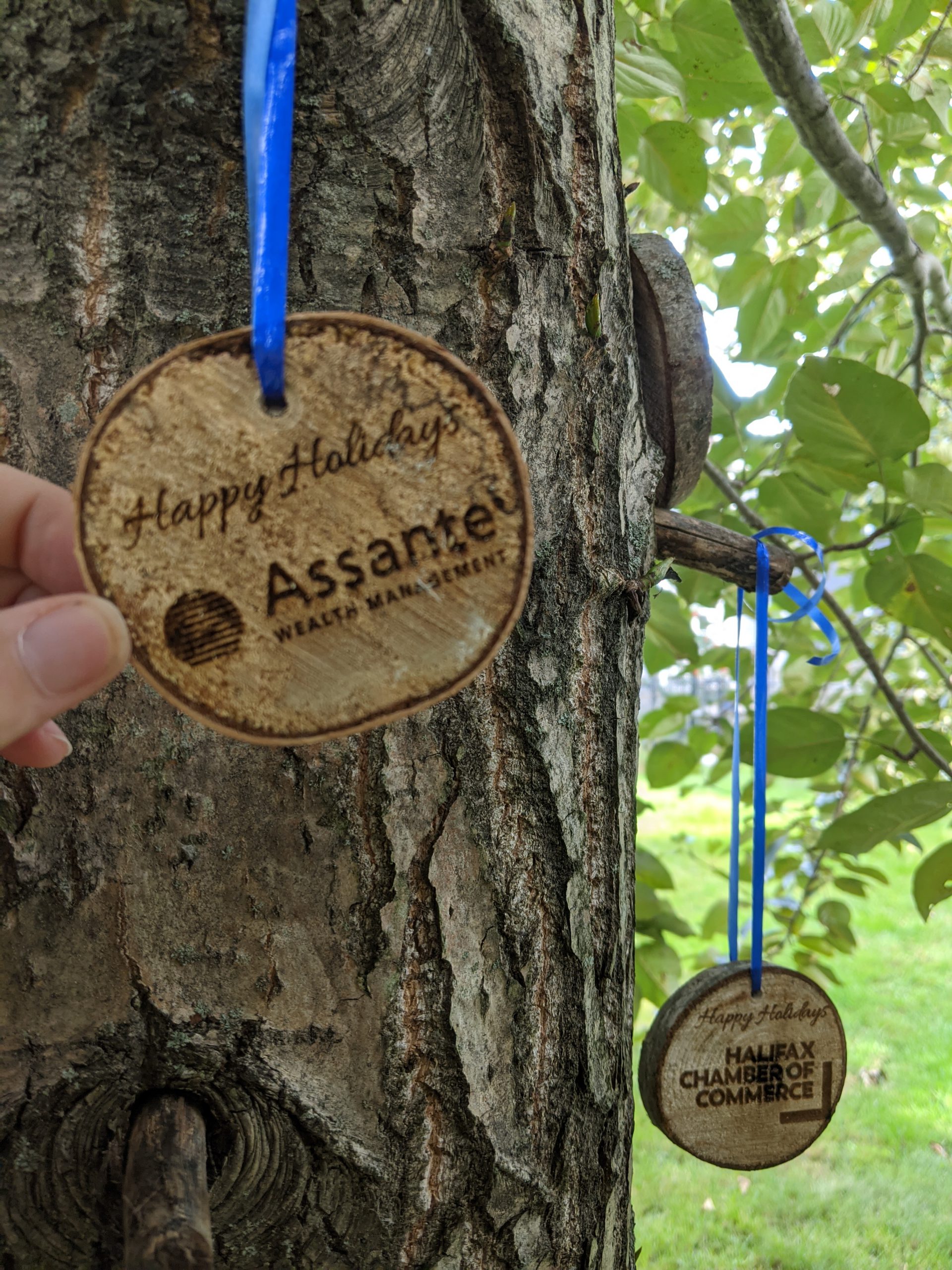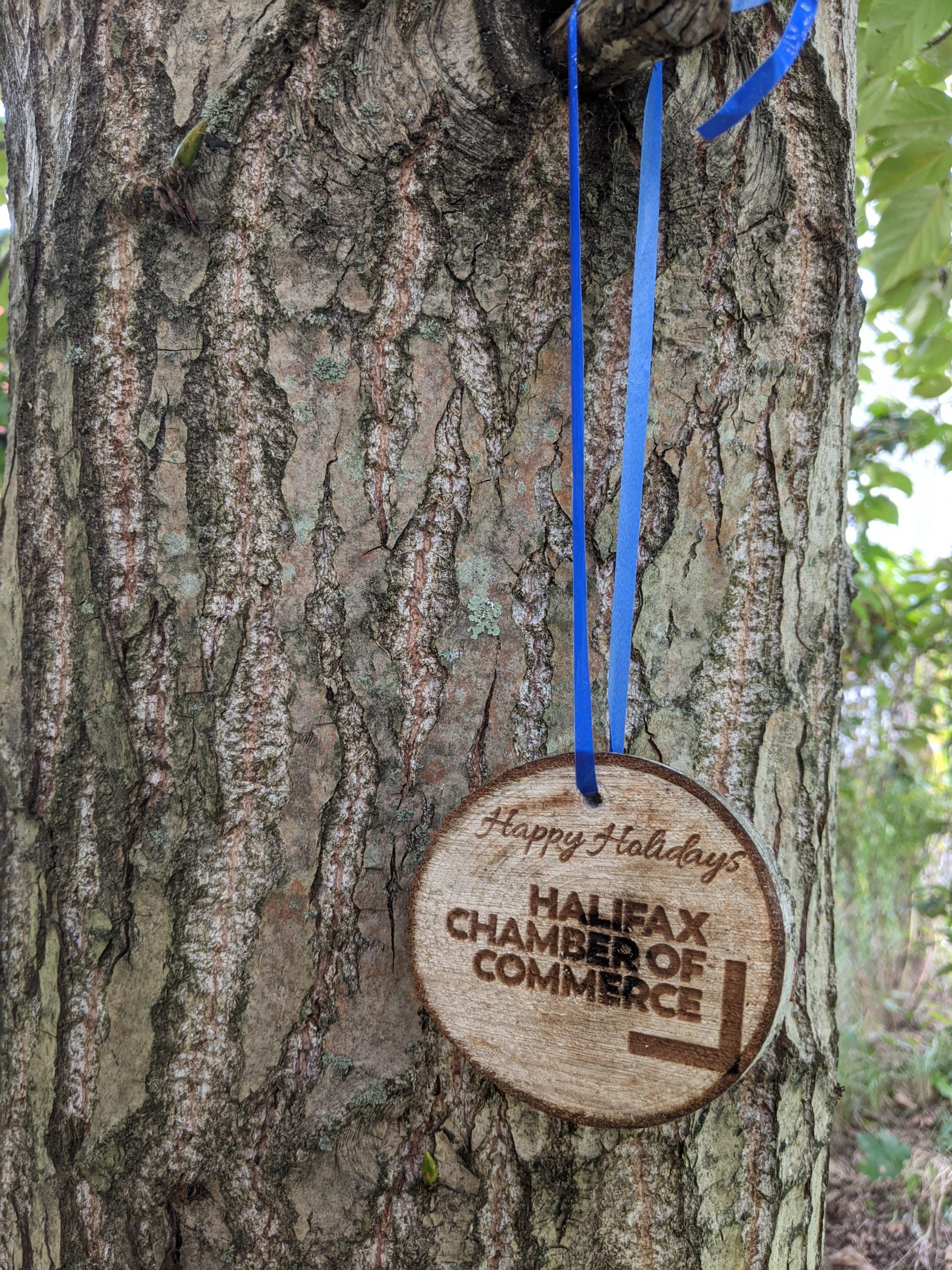 These limited edition ornaments have a super limited quantity. The wood was rescued from a tree that was being cut down in Dartmouth, Nova Scotia, trimmed, hand sanded and can be engraved with your personalized message and logo.
